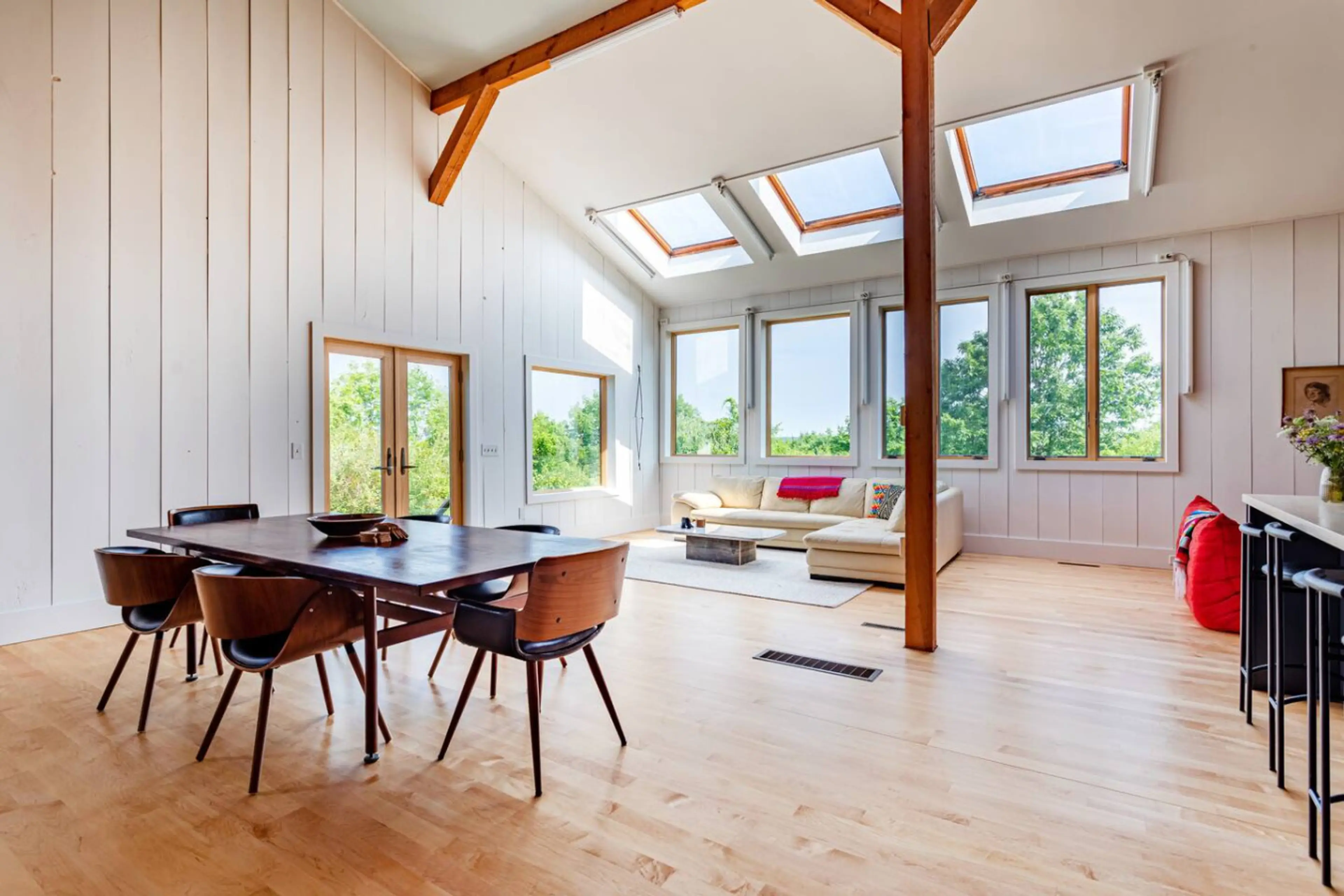 Bask in natural light at this modern-rustic retreat, where soaring ceilings, skylights, and treetop views invite relaxation. Cozy up by the wood stove, cook in the chef’s kitchen, or stream movies on the projector. Enjoy Wi-Fi, laundry, and free parking. Nearby, explore farm-to-table dining, winerie...