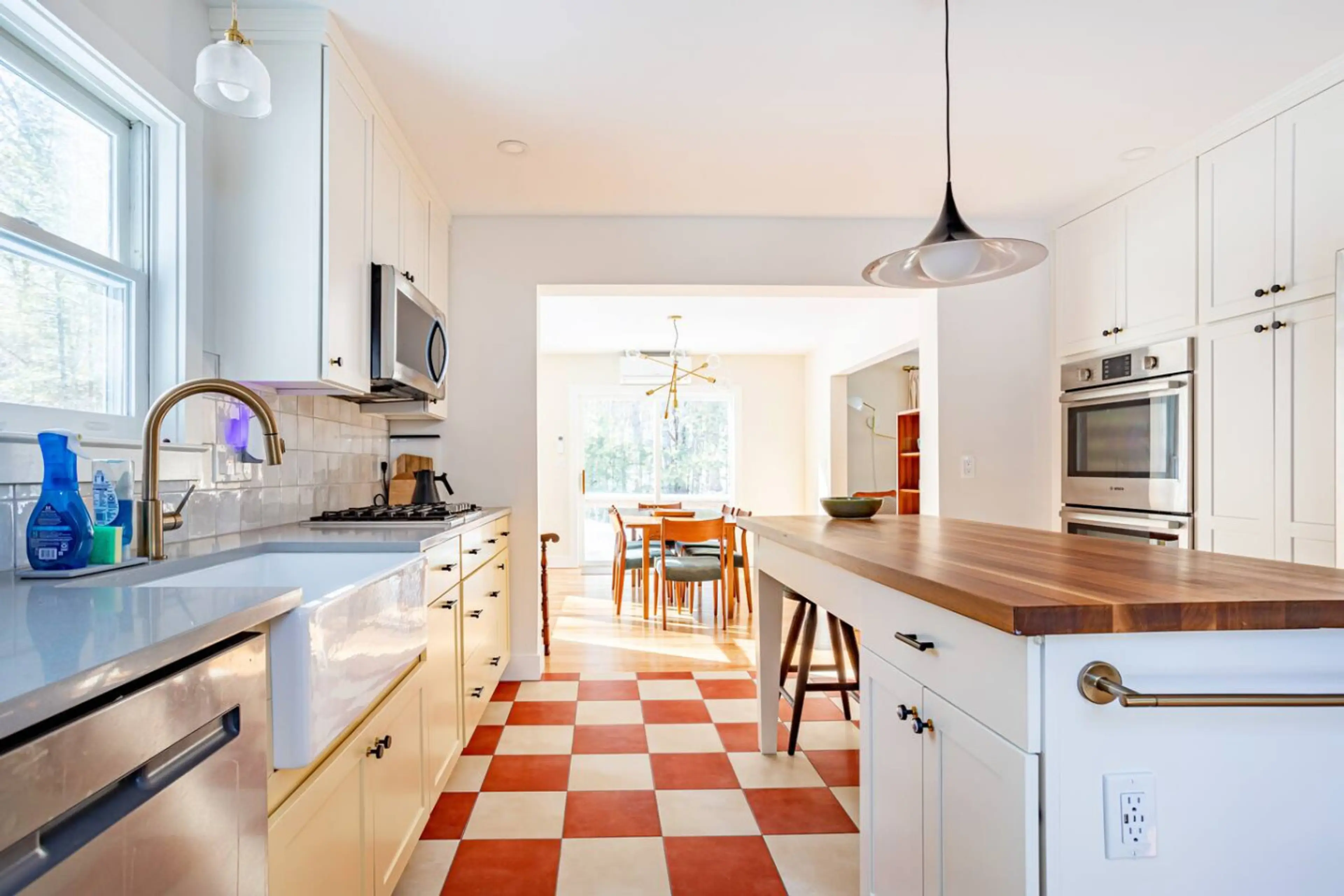 Modern renovated farmhouse on secluded Saugerties location with basketball hoop! Sleeps 8 in four bedrooms (king suite, single with trundle, queen, two twins). Wood-burning fireplace, fire pit full kitchen with island seating, high-speed WiFi, washer-dryer. Two minutes to Red Onion restaurant, 5 min...